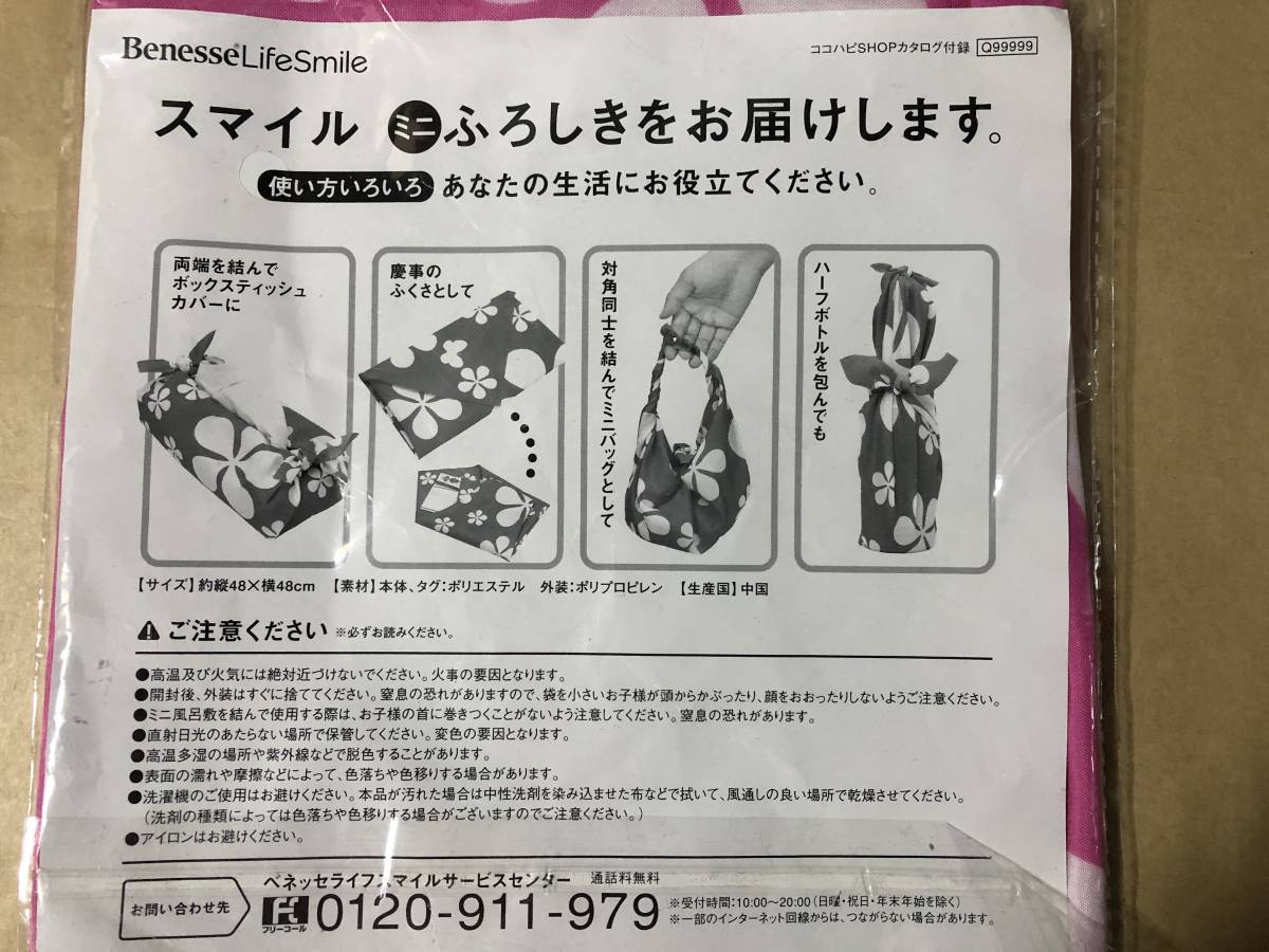 【同梱不可!】Benesse/ ベネッセ ライフ スマイル ★ミニ ふろしき(風呂敷) ピンク