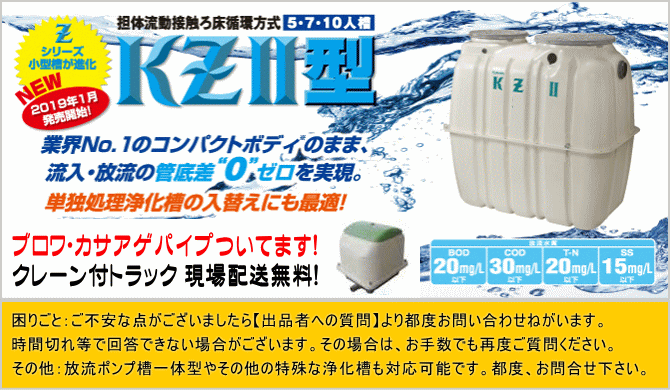 クボタ小規模浄化槽|KZⅡ型コンパクト高度処理(窒素除去タイプ)|7人槽 130㎡超え(約40坪超え)