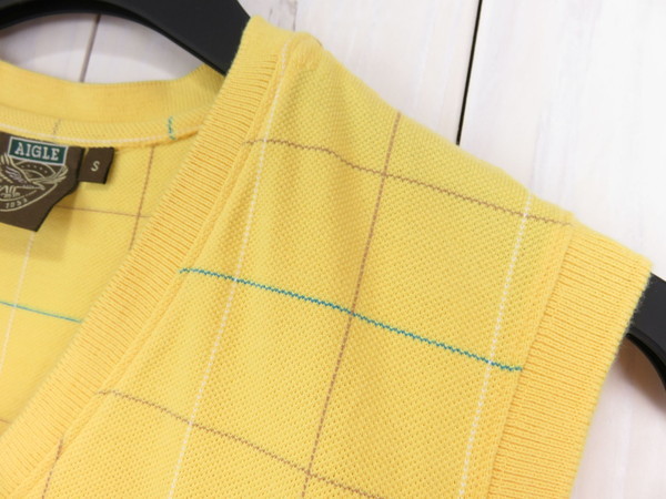 AIGLE エーグル ベスト 刺繍入り 黄色 メンズS