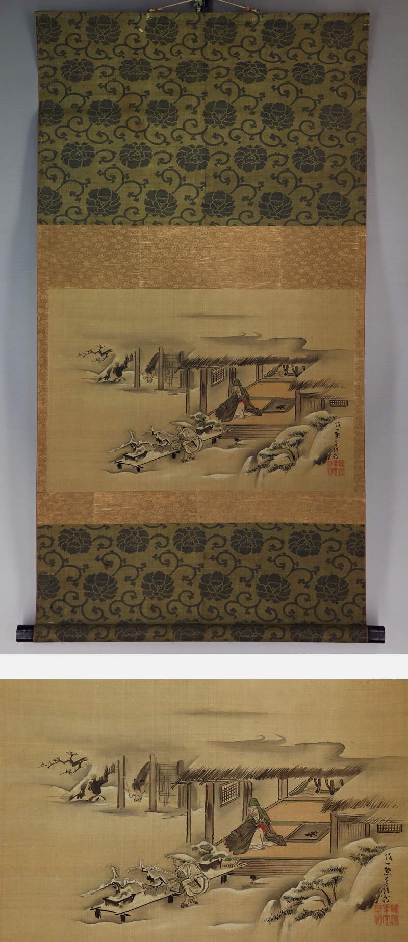 | №1907084【肉筆】古画【鉢木】◆絹本◆掛軸 | |