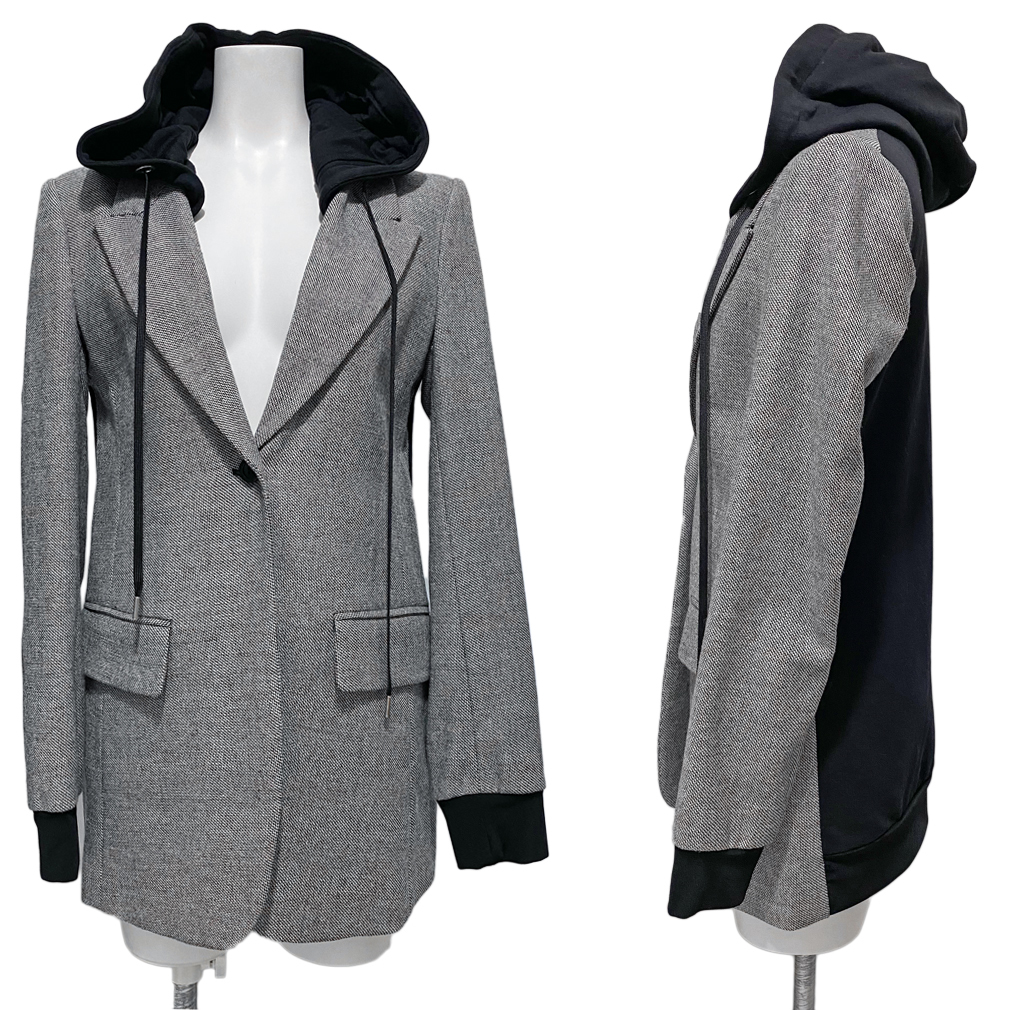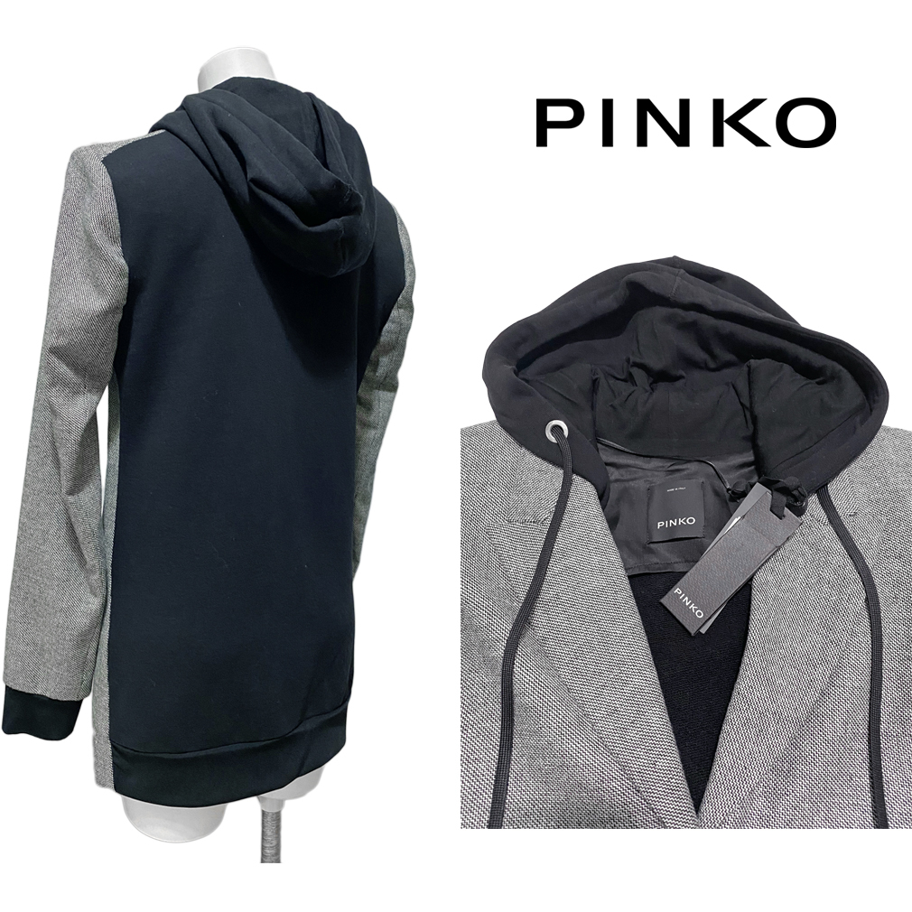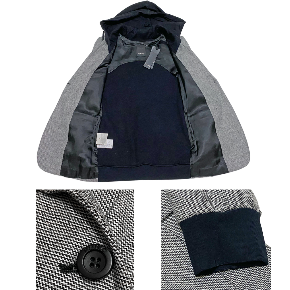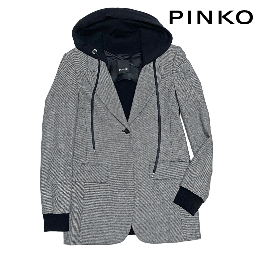 イタリアのヤングセレヴに大人気のブランドPINKO。前面はツイード、背面はスウェット生地の異素材コンビにフードがお洒落なジャケット。コートジャケットとしてもお使いいただけます。 |