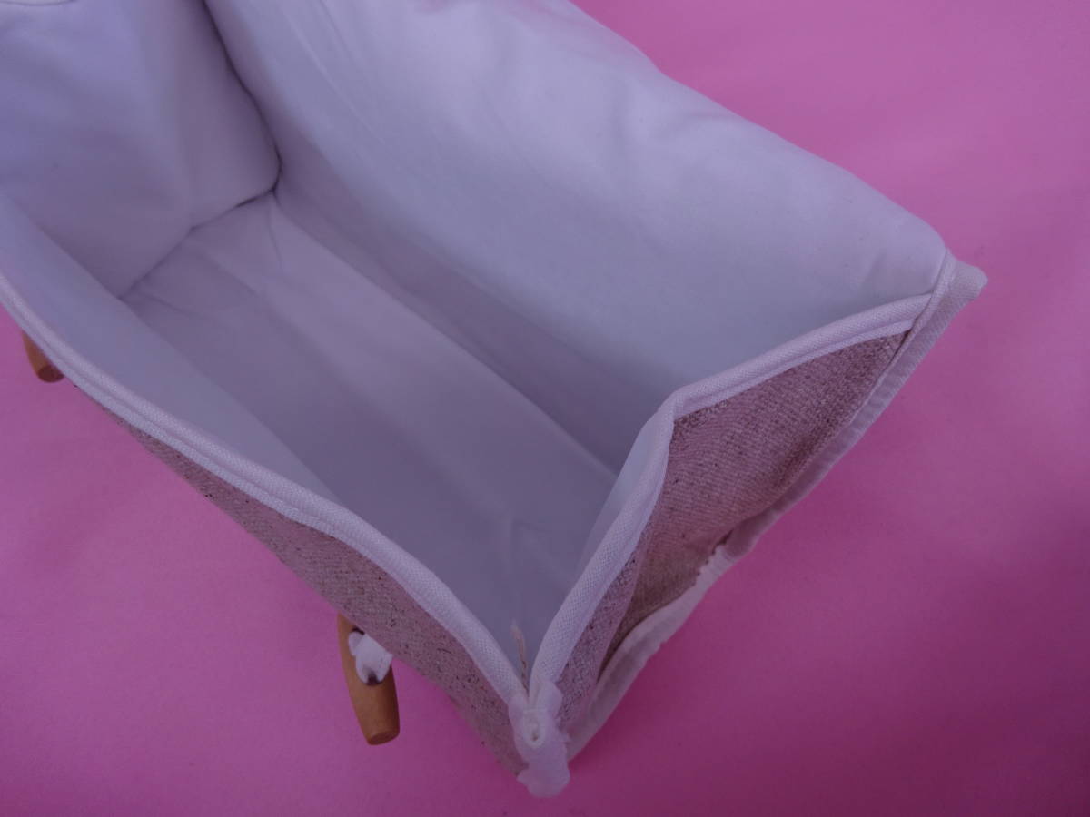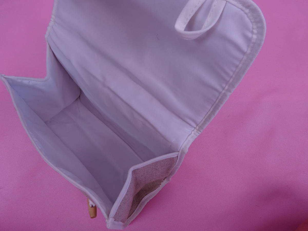 ナチュラルなリネン素材を用いたポーチバッグで、内側は撥水加工になっており、
