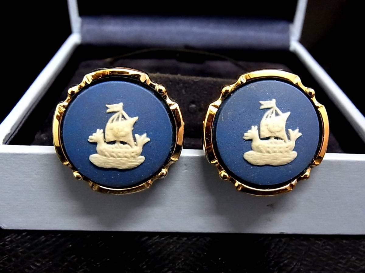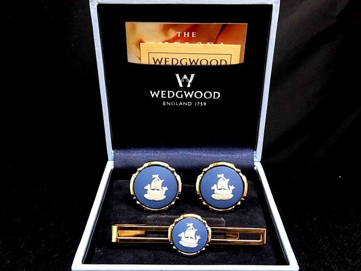 ◎№2595◎■美品■ウェッジウッド【ゴールド】■「船」 カフス&ネクタイピン セット♪