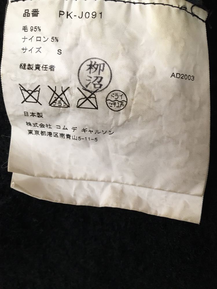 コムデギャルソンの縮絨加工にご理解のある方のみお願い致します。特にこちらの商品は店頭に並んでいた際から毛玉があったような激しく加工された商品でしたのでご理解のある方のみお願いいたします。