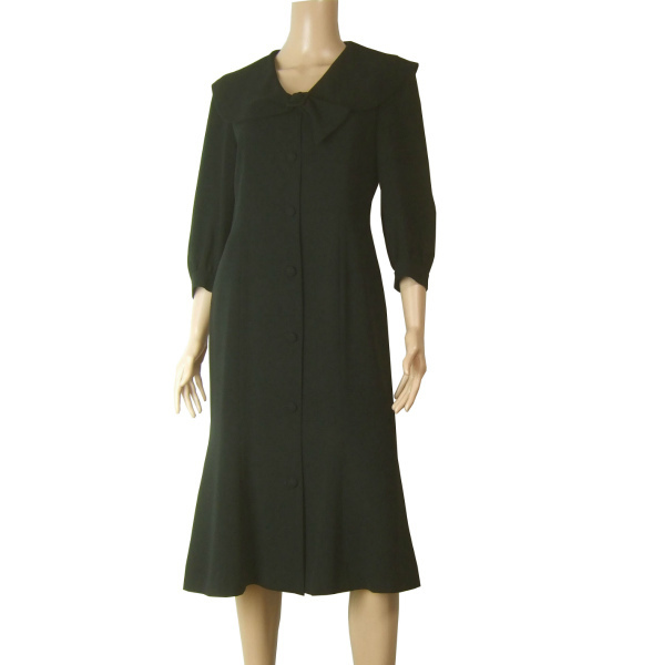 | 商品詳細 | NO-A4260 ★【ブランド】 * YUKI TORII 昭和レトロ(株) ★【特徴】 *さらりと程よく伸縮性のある上質な薄手素材、凛と美しく引き締まった濃黒カラーに目を惹く大人なブラックフォーマルワンピースです。 丸みのある襟元が女性らしいデザインとなっており、胸元にはバックルが施され、胸元で留められるようになっています。 襟元の一番上にスナップボタン1つ、フロント部分にボタン7つ留め仕様。 両袖口にもボタンがそれぞれ施されています。 シンプルながらも気品溢れる大人なデザインのブラックフォーマルワンピース、是非いかがでしょうか。 ・肩パット× ・裏地○ ・伸縮性○ ・ポケット× ・季節性 春秋向け ※状態につきましては当社基準のランク表も合わせてご参考下さい。 | ||||||||||