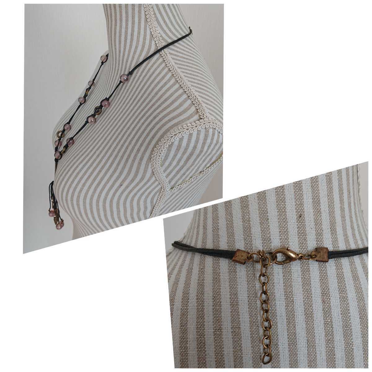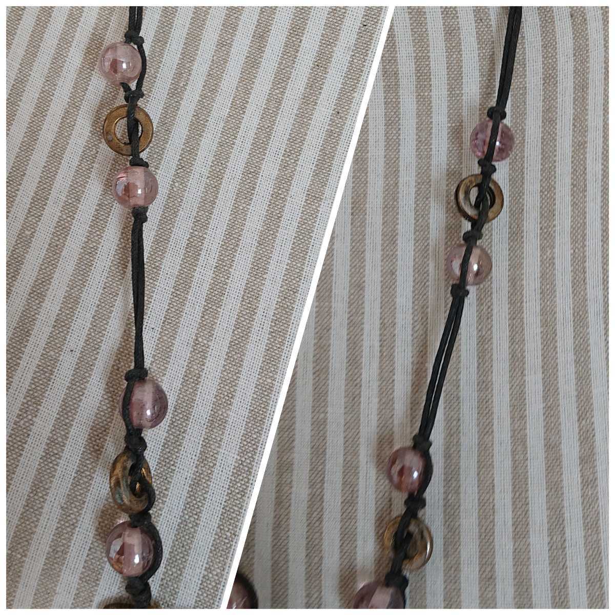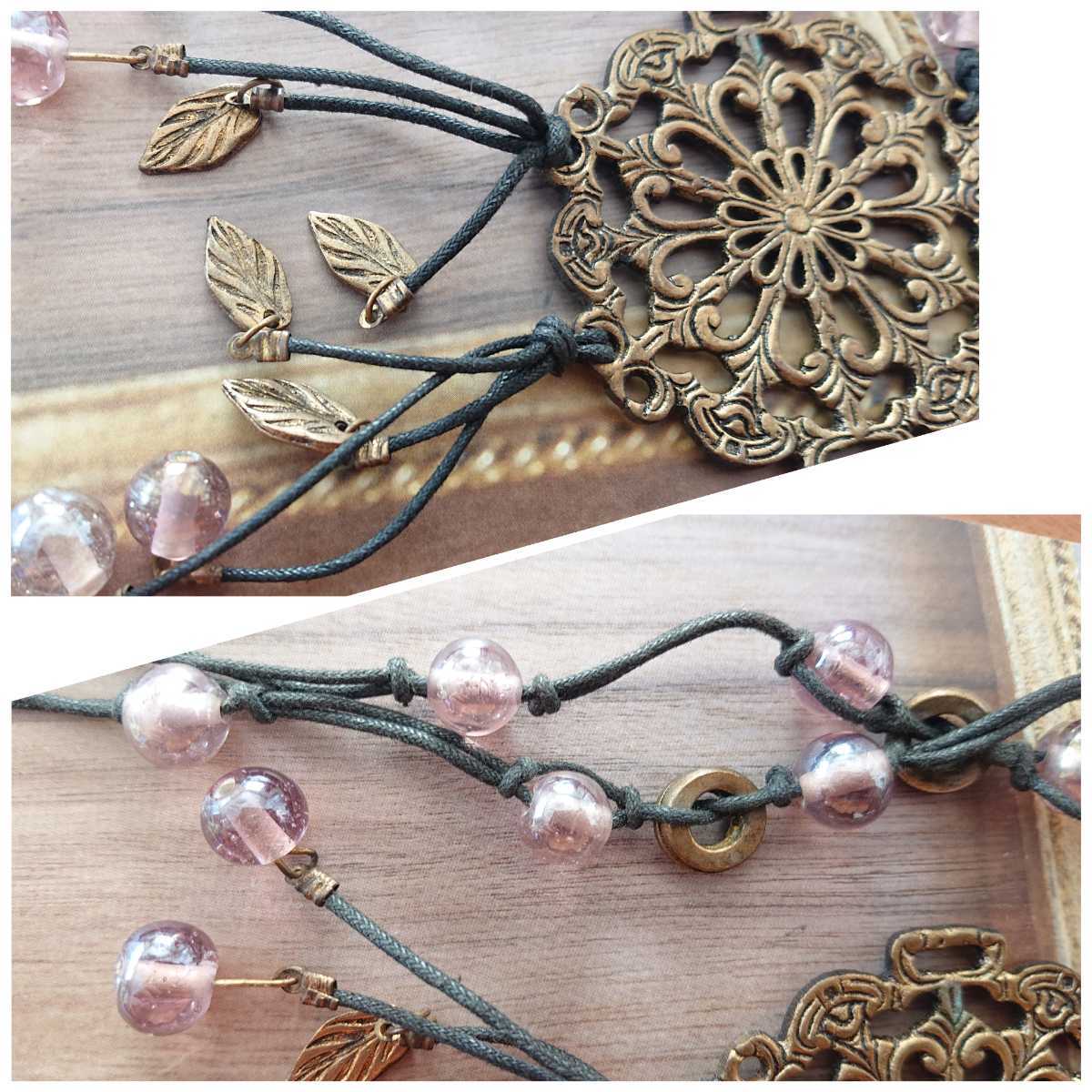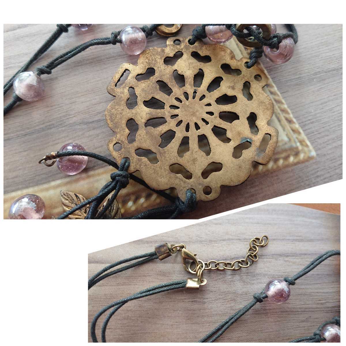 大きな透かし彫りモチーフ×ガラスビーズのロングネックレスです
