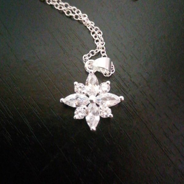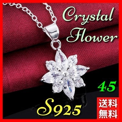 ネックレス 花 ホワイト 925 スターリングシルバー クリスタル ジュエリー 長鎖 ペンダント ネックレス