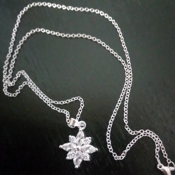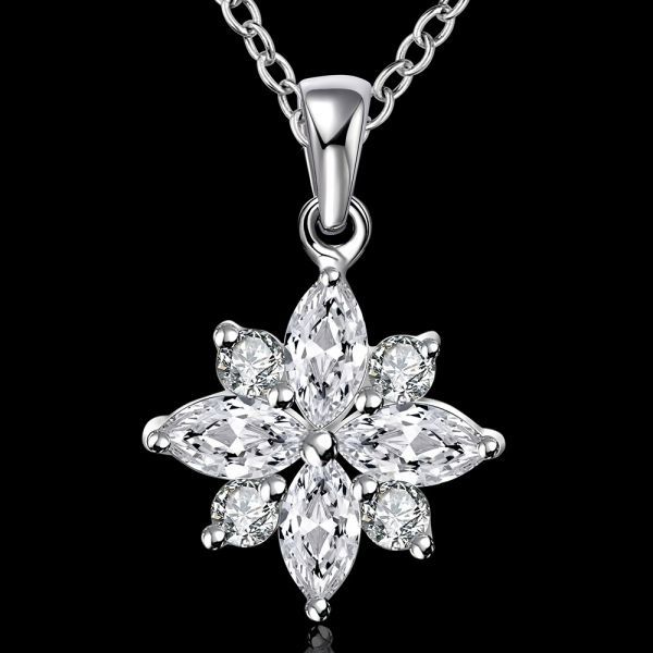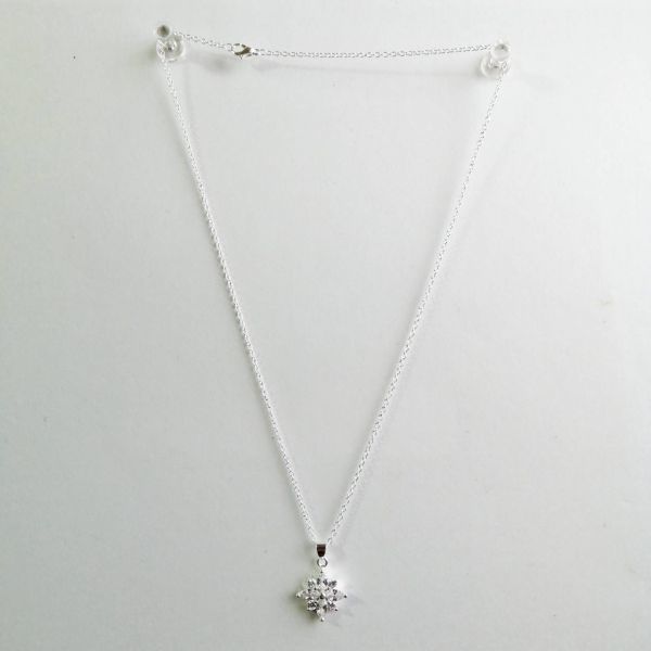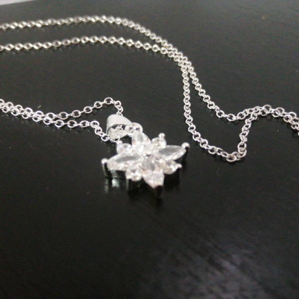 ネックレス 花 ホワイト 925 スターリングシルバー クリスタル ジュエリー 長鎖 ペンダント #C198-1