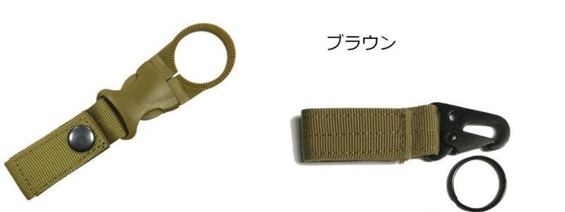 茶 カラビナ キーリング タクティカル ベルクロ ベルト ロックカラビナ 多機能 キーホルダー アウトドア ナイロン登山対応2個セット