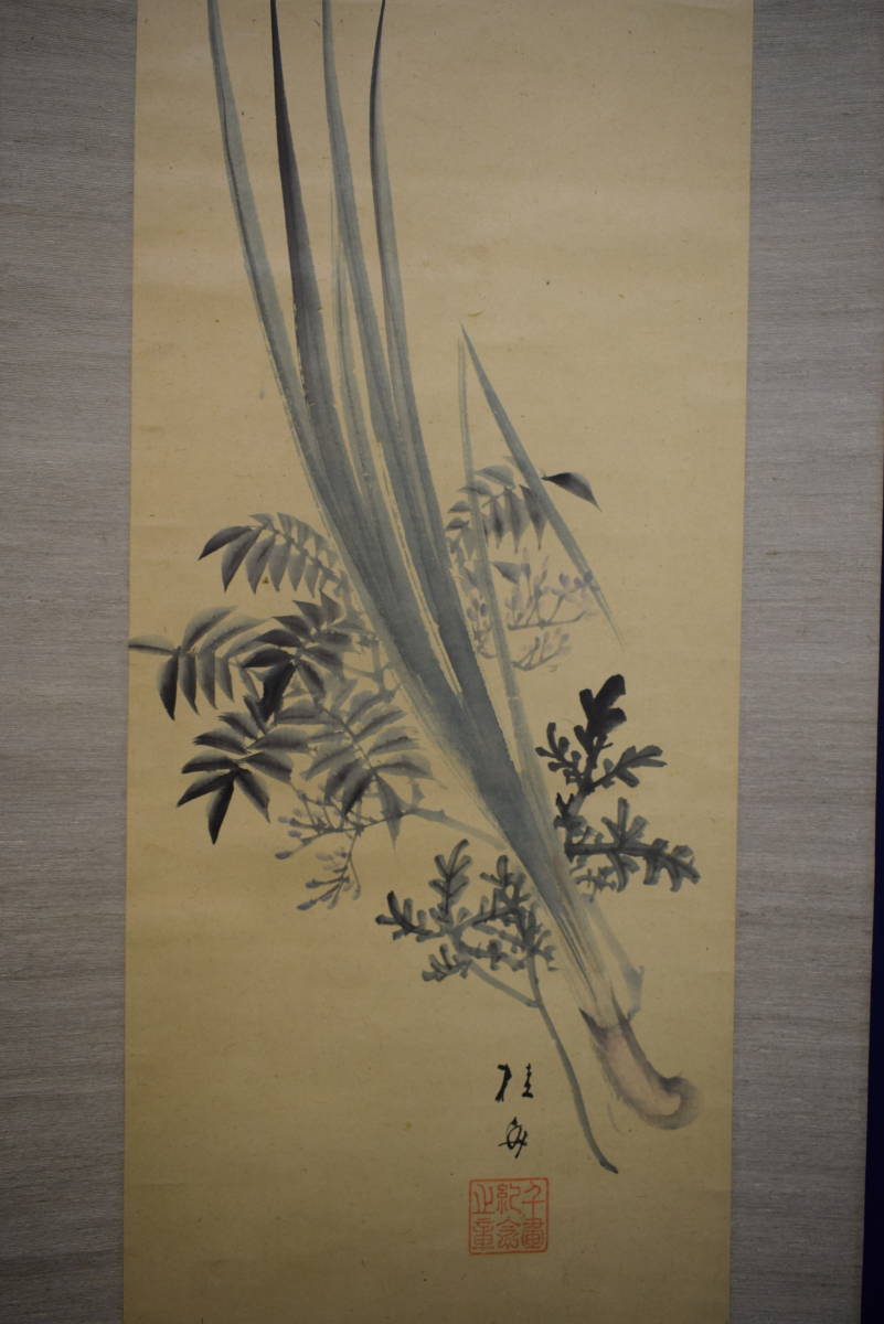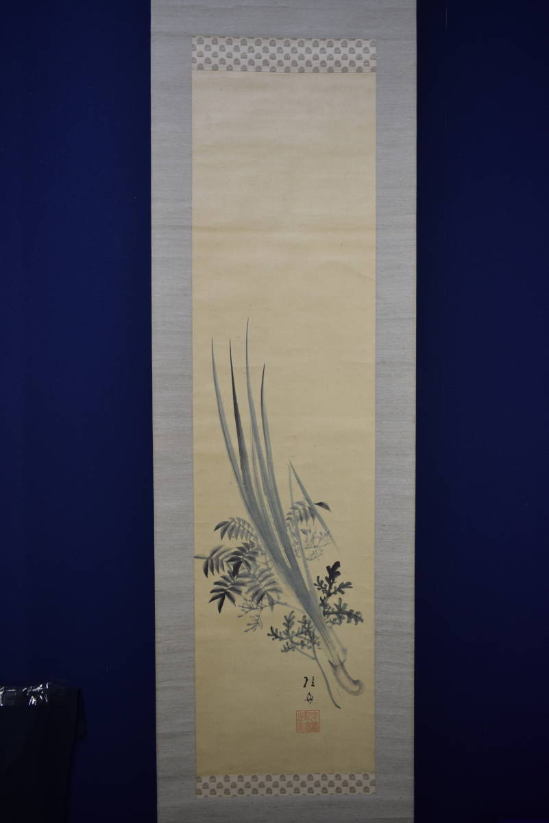 【真作】//広島県/福山市/羽田桂舟/菖蒲図/桐題箱付/布袋屋掛軸HI-470