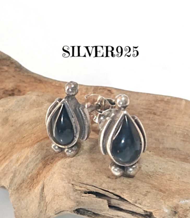 インディアンジュエリー ティアドロップ型のオニキスが印象的なピアスです!