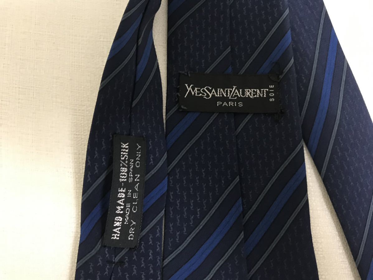 商品名:美品本物イヴサンローランYSLシルクネクタイビジネススーツパーティーメンズ紺ネイビー柄スペイン製結婚式
