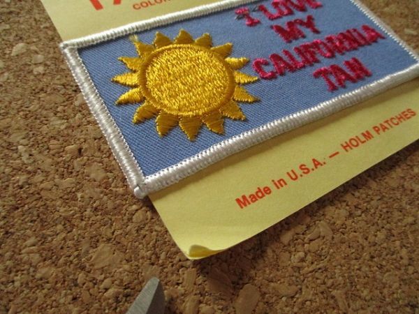 80s カリフォルニア I LOVE MY California TANビンテージ刺繍ワッペン/アメリカ日焼け太陽日サロ旅行USAスーベニア西海岸ビーチPatches