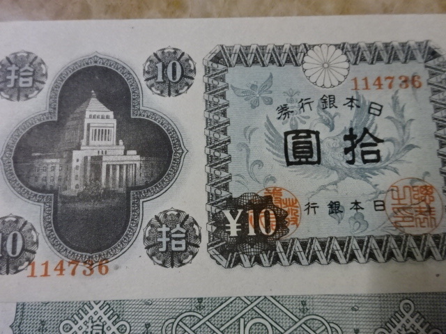 日本銀行券A号10円 議事堂10円の12印刷工場で未使用~極美品です。
