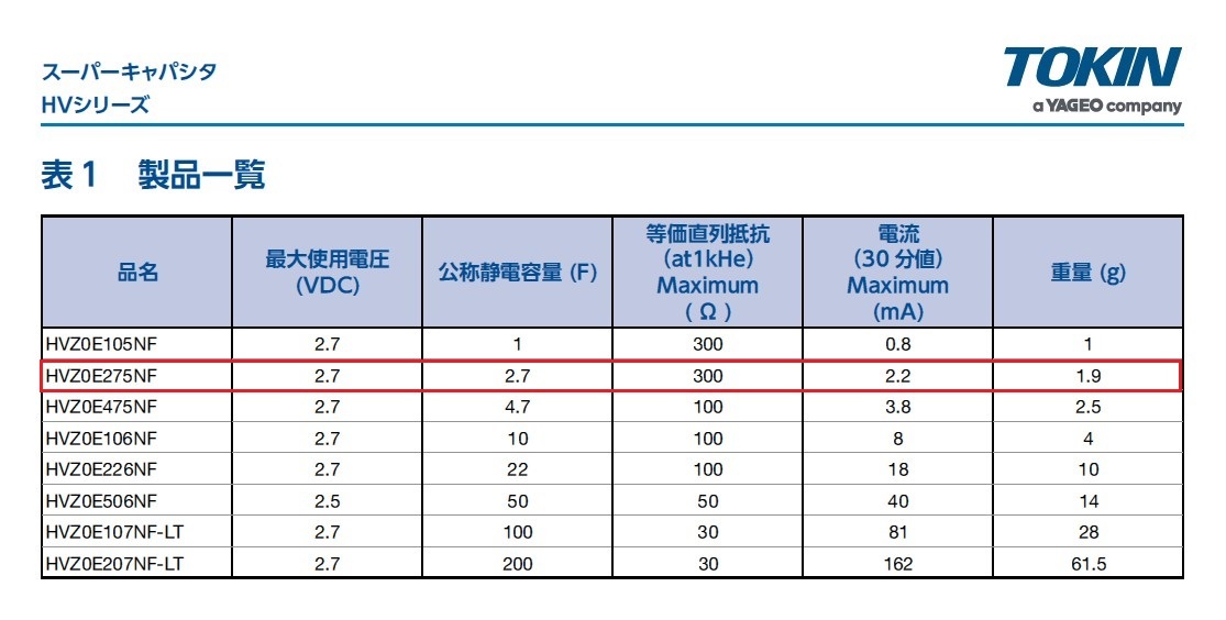 NEC/TOKIN 大容量 スーパーキャシタ 2.7V/22μF HVZ0E226NF