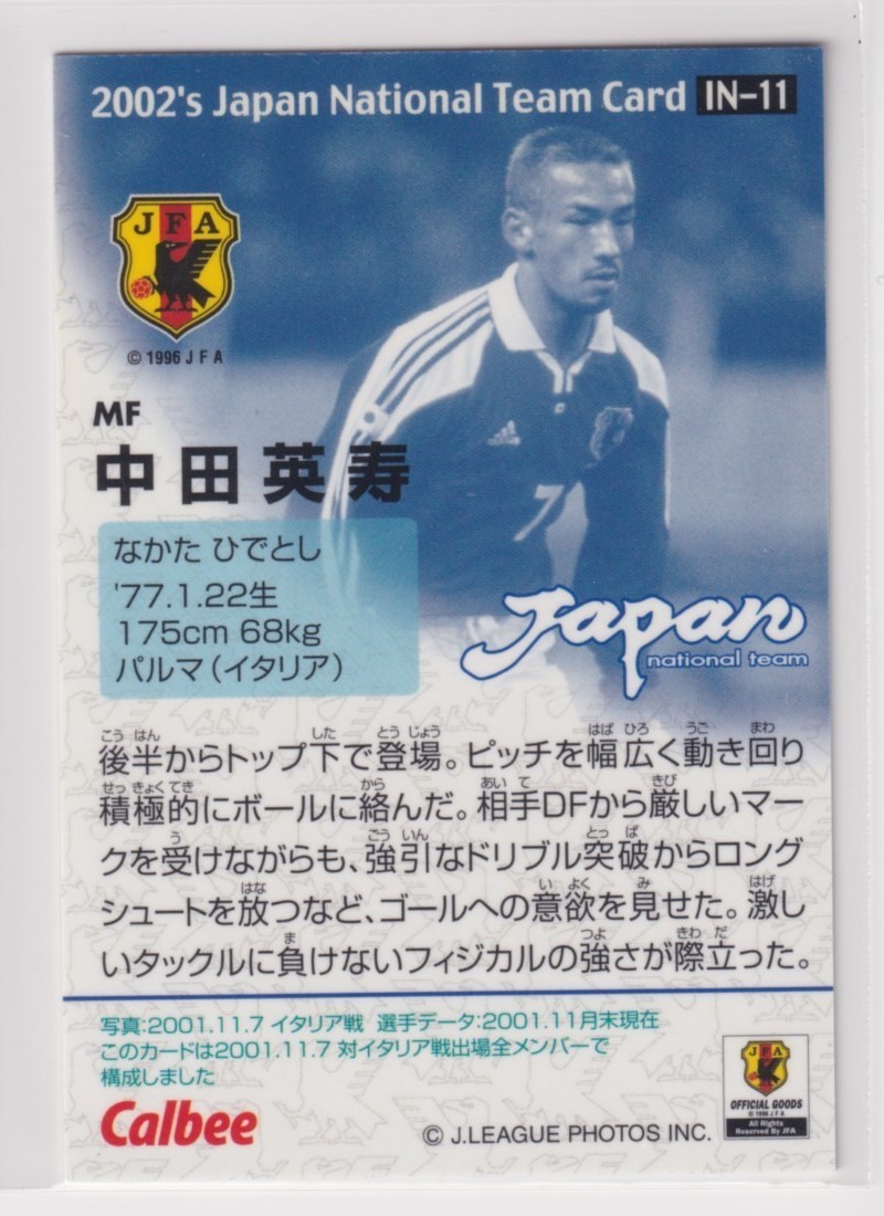 サッカー日本代表チームチップス2002第1弾 IN-11 中田 英寿 MF パルマ
