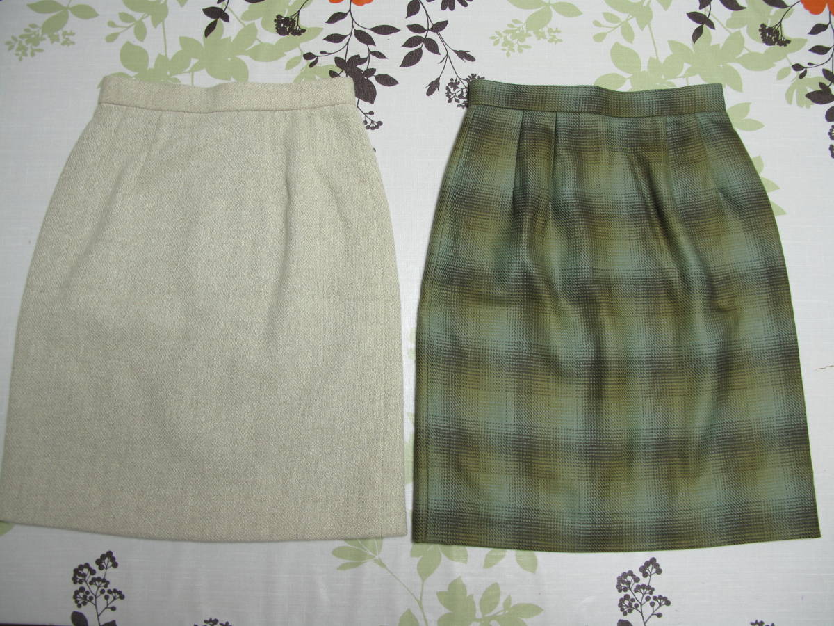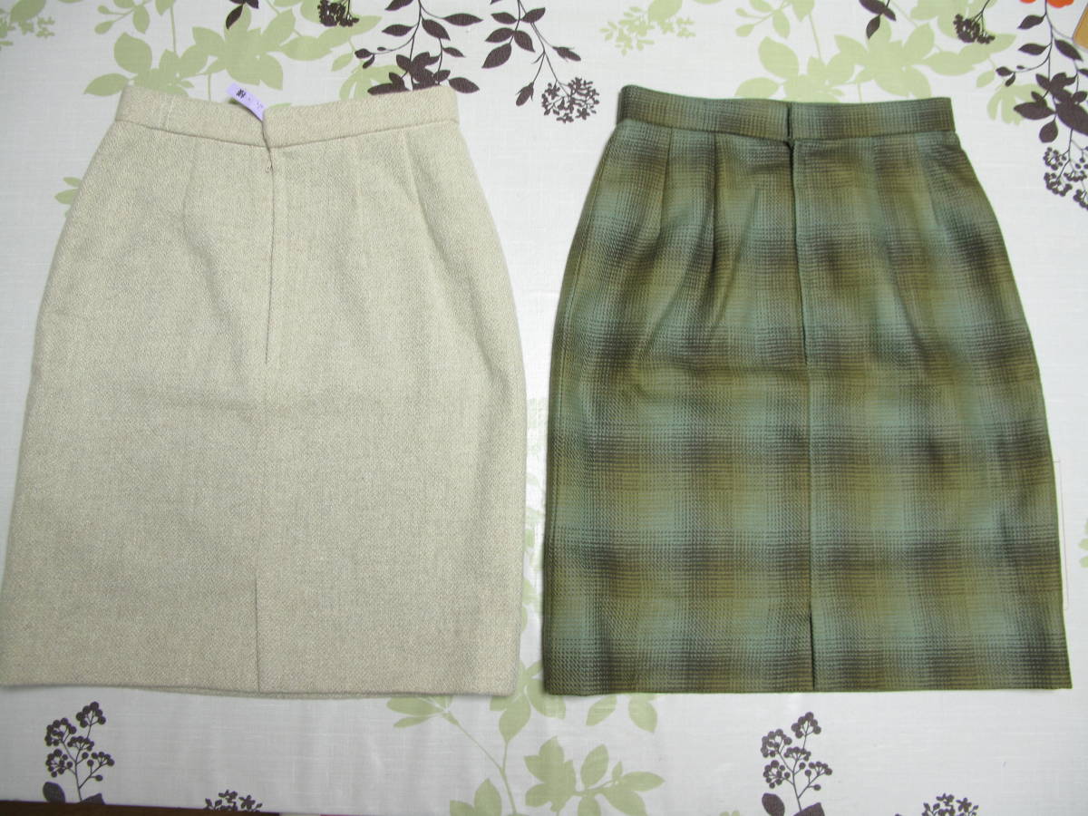 新品同様 2枚セット まとめ売り ハンドメイド タイトスカート 起毛 ベージュ グリーン チェック W60