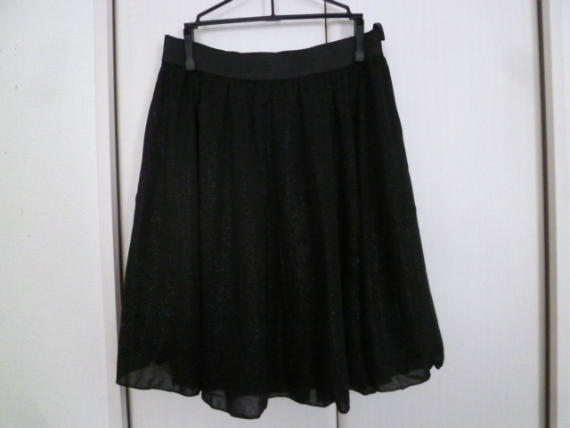 NATURAL BEAUTY BASIC/ナチュラルビューティーベーシック△黒ラメフレアースカートM/サンエーブラック△SK126