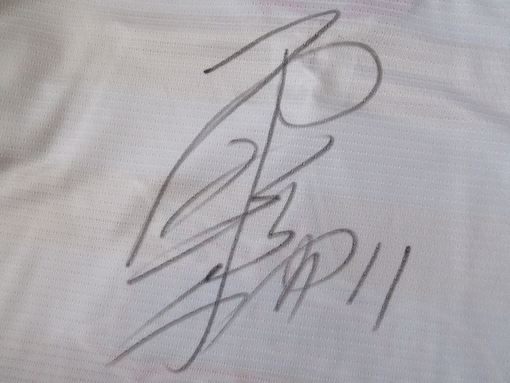 未使用品ではありますが、ホッケーシャツ裏面に、「西脇雅仁(Masahito Nishiwaki)」選手のサインが施されています。