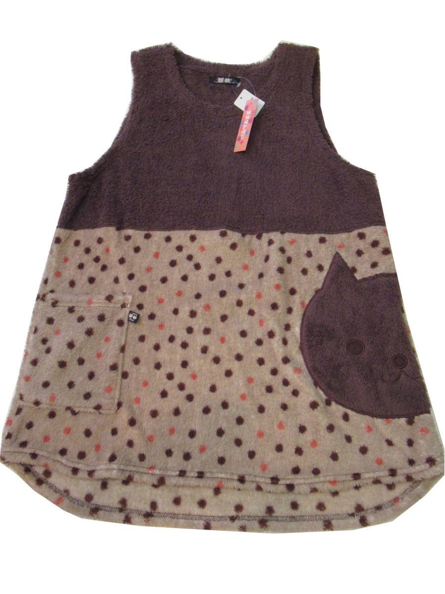 キッチン エプロン 秋冬モデル もこもこ暖ったか アニマル柄プルーオーバー キッチン サービス品 ブラウン(M~L ゆったりサイズ)