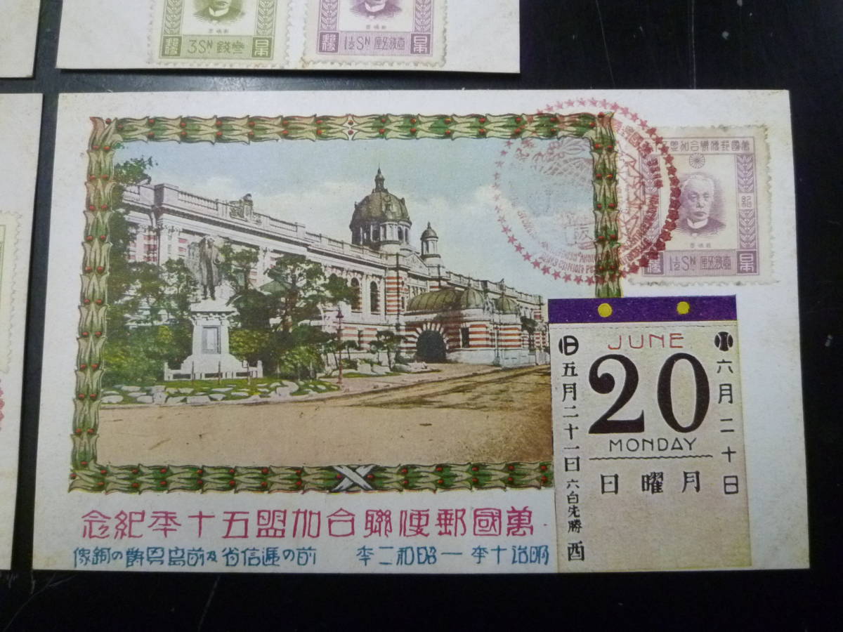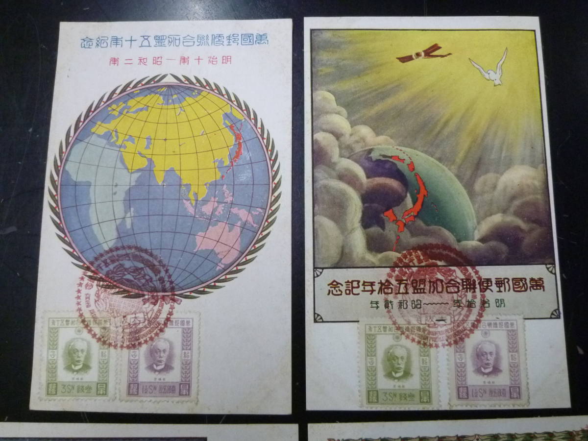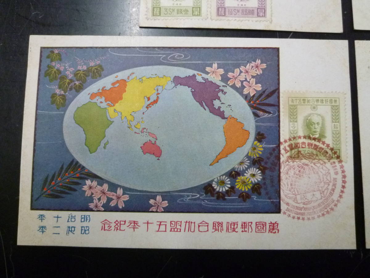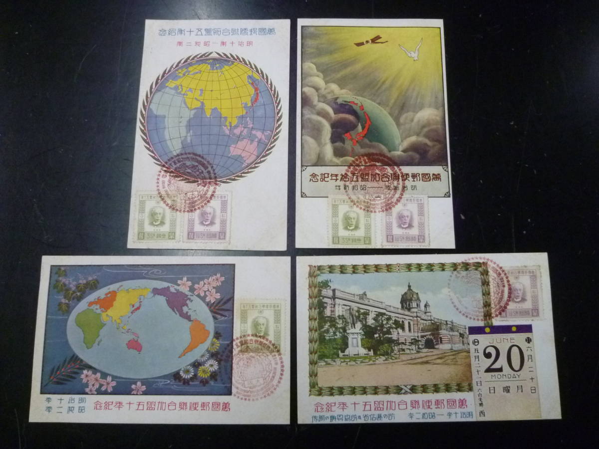 21MI P 絵葉書№97 日本はがき 昭和 記念切手 UPU加盟50年貼 計4通