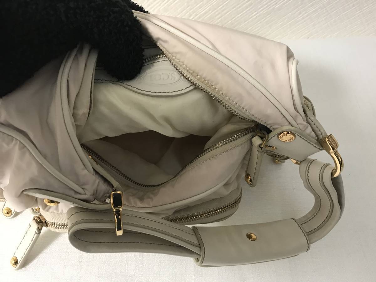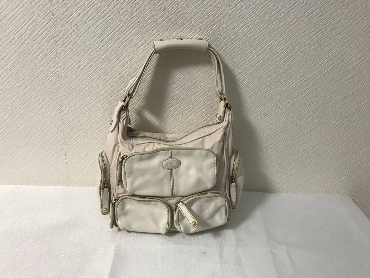 本物トッズTODS本革レザーナイロンワンショルダーバッグビジネスハンドバック白ホワイトメンズレディース旅行トラベルパーティー