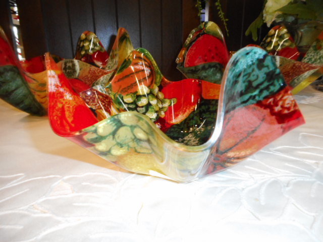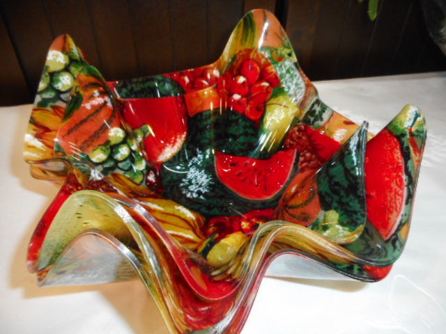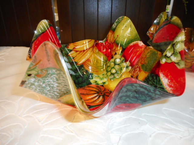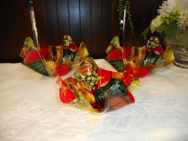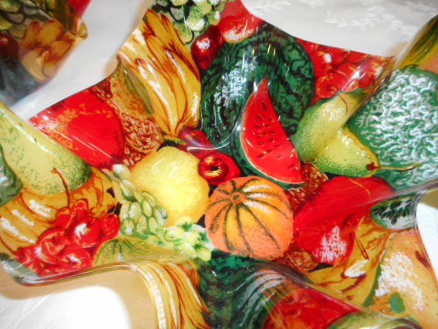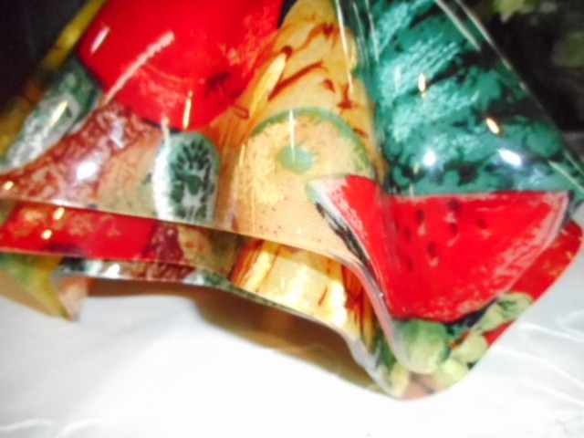 フルーツ絵柄入り フリルプレート 花型 プラスチック製 サイズ違い3個 メラミン 在庫品
