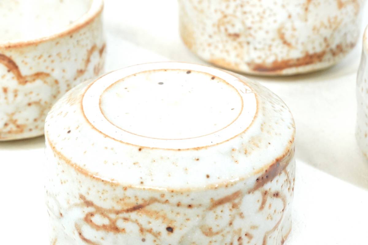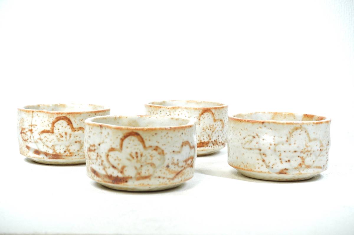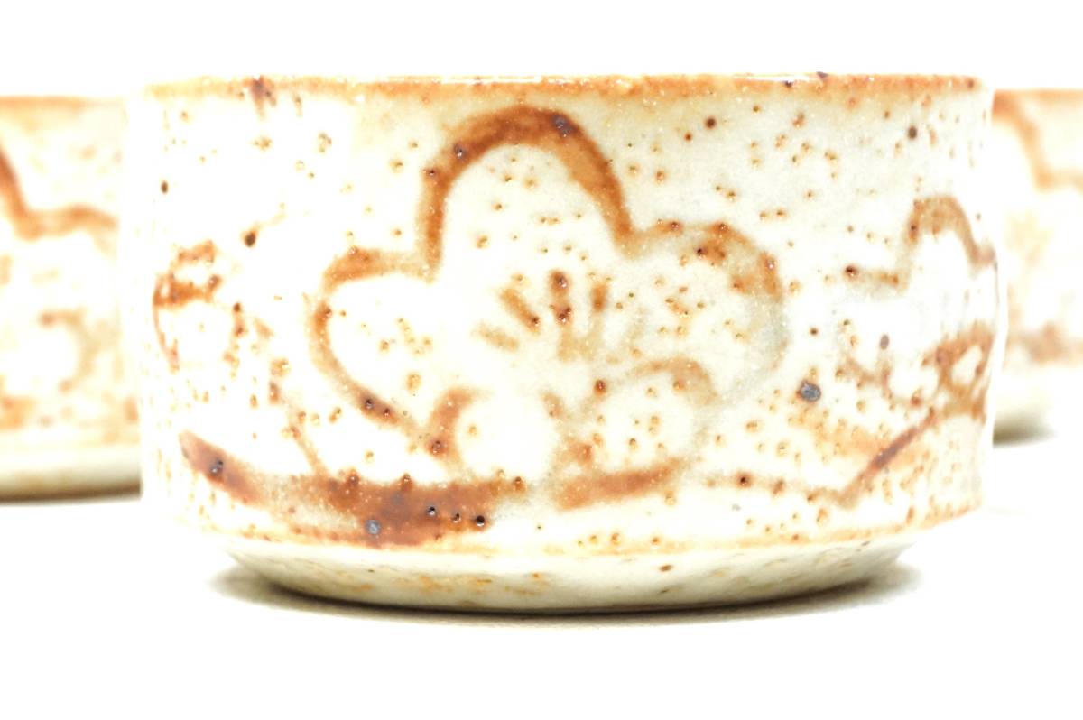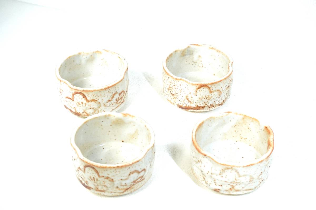 昭和ビンテージ 志野焼 眞山作  小鉢揃 5客揃え 共箱 形、花紋がとても素敵な小鉢です! エステートセール INI
