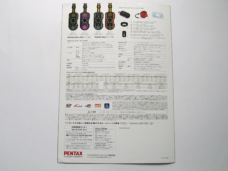 【カタログのみ】 PENTAX WG-3 GPS / WG-3 カタログ (2013年1月)
