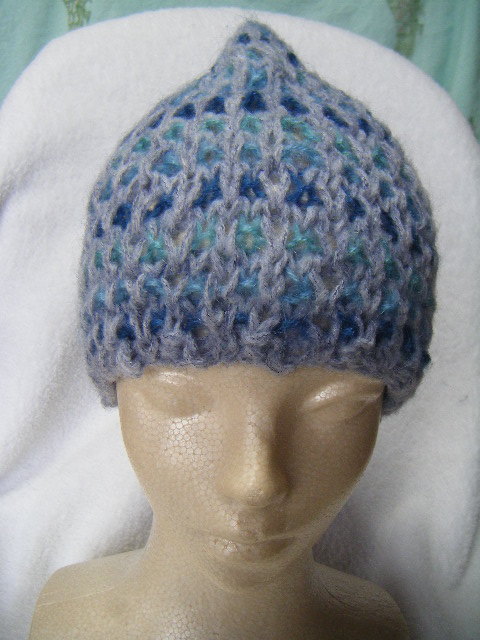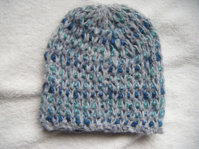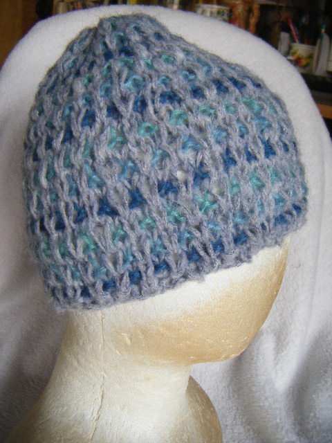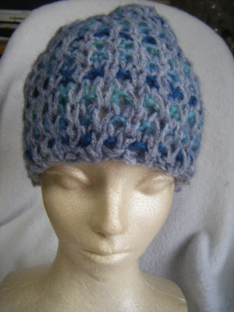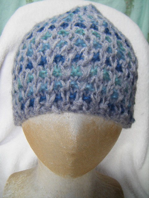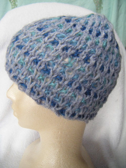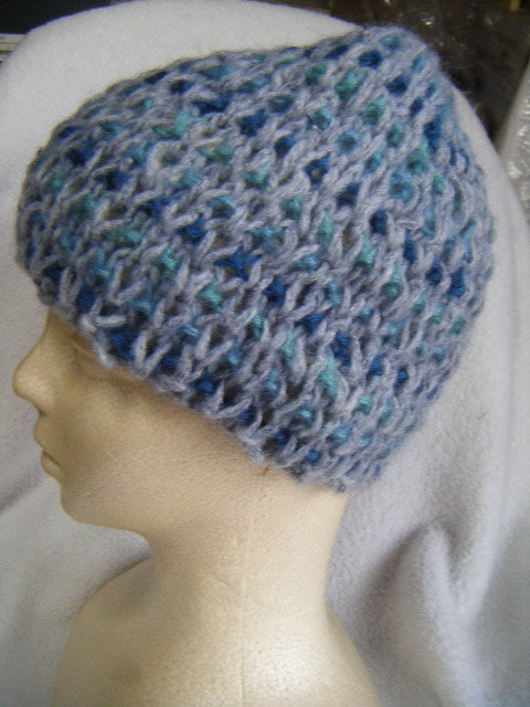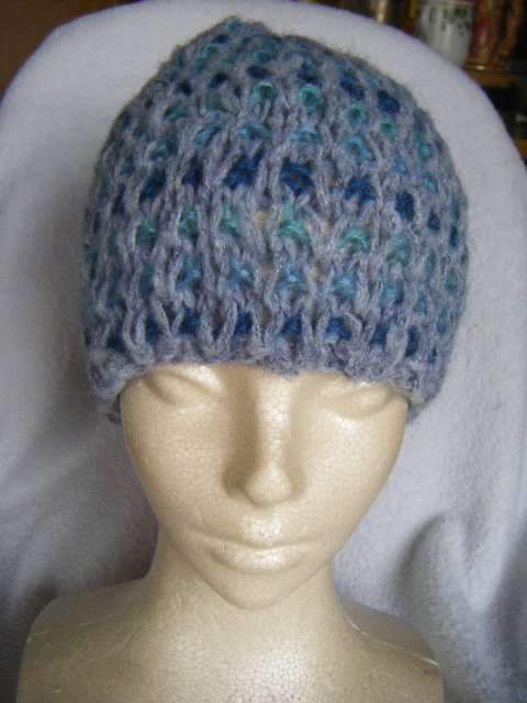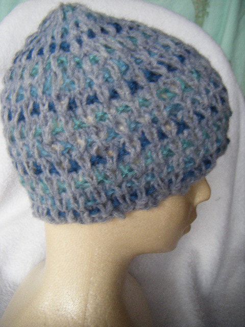 秋、冬*手編み男女兼用キャップ*青ぽい薄灰に3種類の色    55