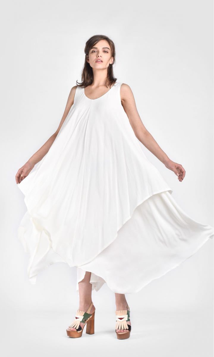Aakasha ノースリーブドレス ノースリーブワンピース 白