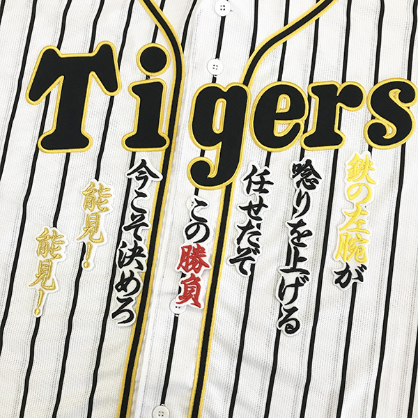 商品説明 | 阪神 タイガース 能見篤史選手の応援歌、アイロン接着用刺繍ワッペンの出品です。 アイロンにて簡単に接着可能♪♪ ※写真のユニフォーム等、他の装飾品はついておりません。 |