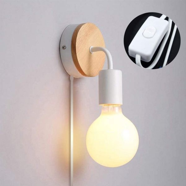 牢記照明 コンセント式 スイッチ付き LED対応 間接照明 ブラケットライト/ウォールライト 1灯 シンプルデザイン(非調光ホワイト)