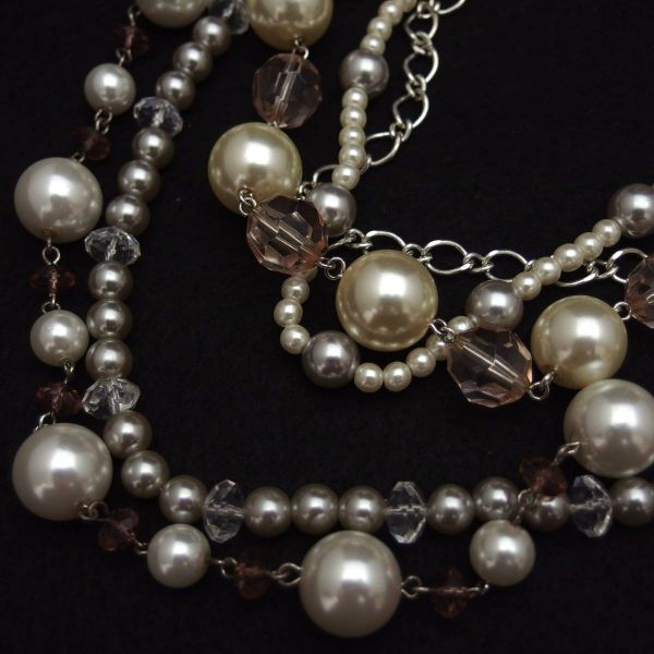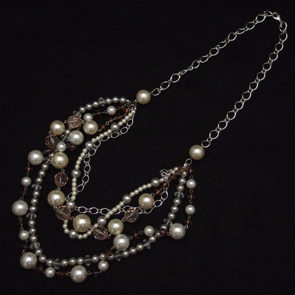 A2337◆ 【SAQ】◆ ビーズで飾られた5連のチェーンビブで飾られたヴィンテージネックレス ◆ 長さ86㎝ ◆