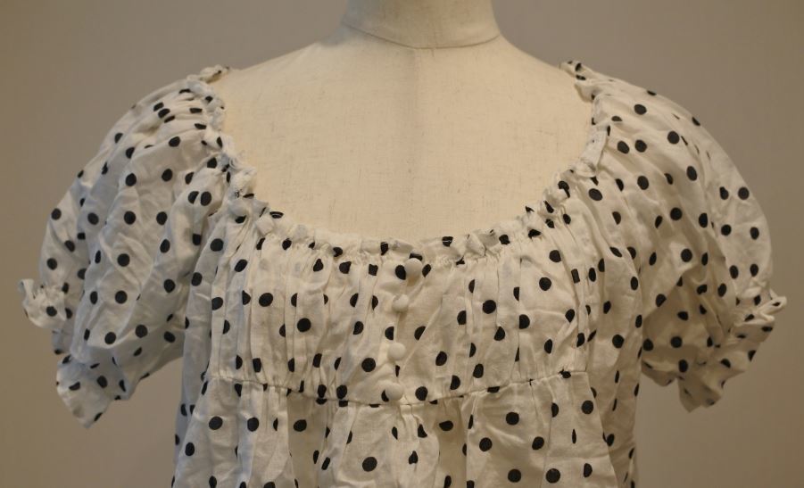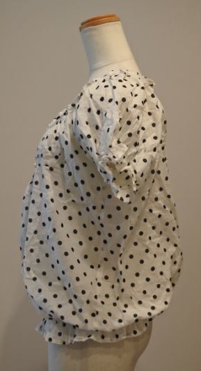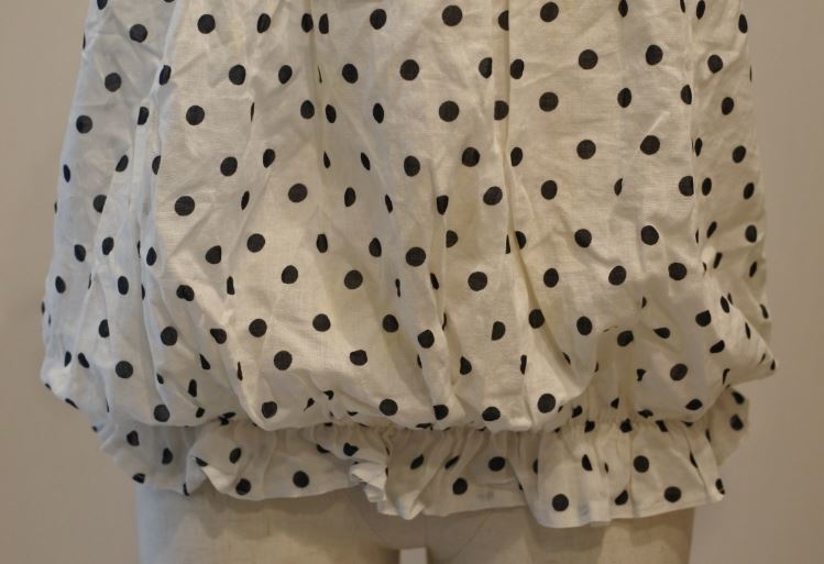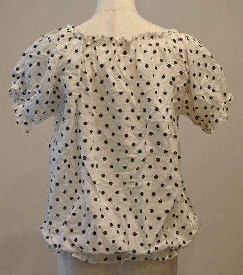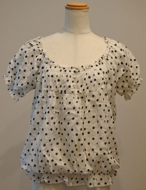 a little emotion アリトルエモーション ブラウス プルオーバー 半袖 ドット柄 白x黒 シャーリング Fサイズ すけ感 ondrmi k2h0328★