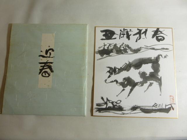 旧家から 色紙 高羽敏 丑 丑歳迎春「迎春」/ 5 干支色紙