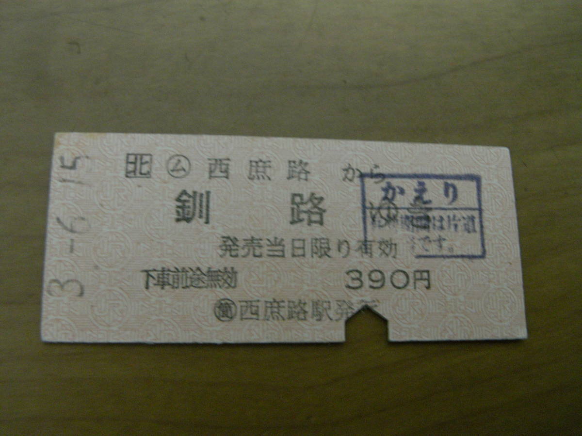 根室本線 ム西庶路から釧路ゆき 平成3年6月15日 簡 西庶路駅発行
