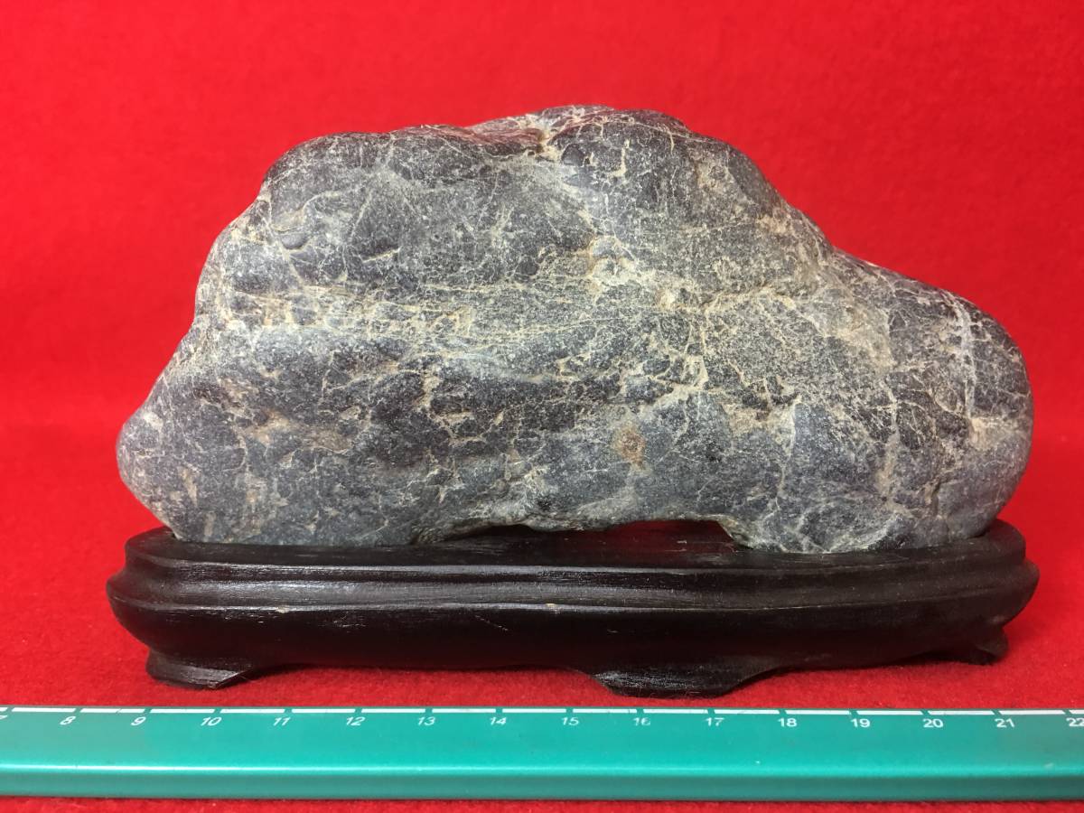 ★【逸品堂】★ 下が空いたトンネルの様 鑑賞石 木の台座 付き 山石 水石 自然石 鑑賞石 盆栽石 盆石 飾り石 観賞石 滝石の姿 珍品 溜り石