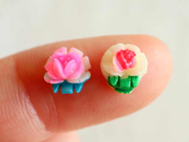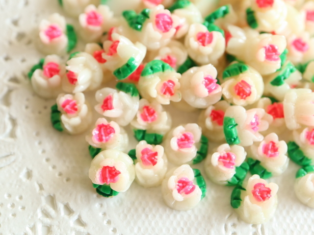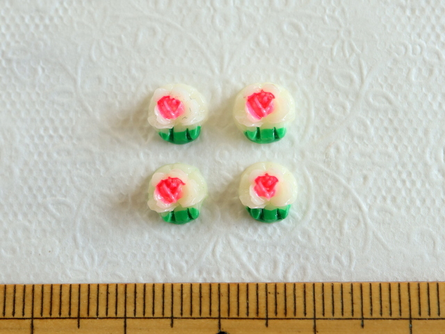 ミニ ピンク ローズ バラ フラワー 花 ジャパン ヴィンテージ 日本製 レトロ カボション ハンドメイド アクセサリー パーツ 7mm 4個