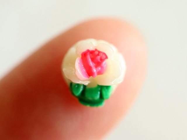 小さいながらも繊細な作りで、鮮やかなピンクとグリーンにハンドペイントされており、レトロで可愛いです。
