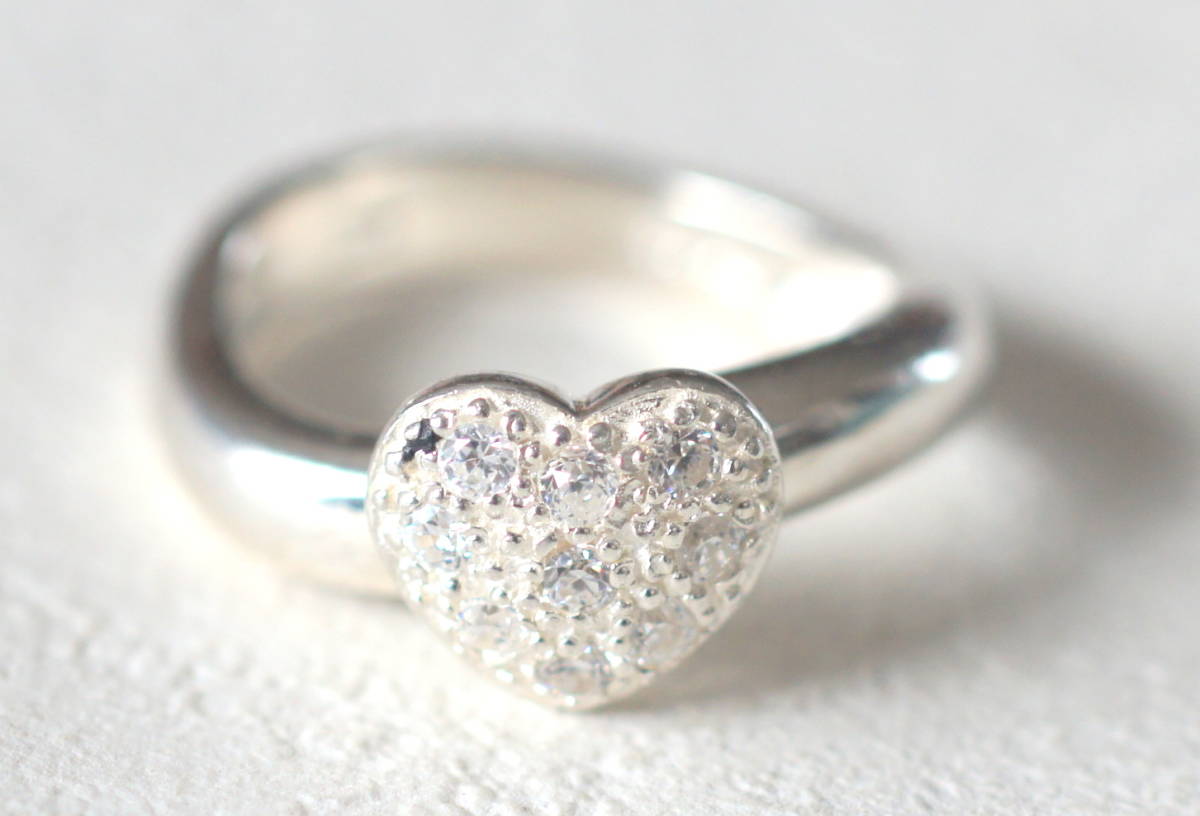 シルバー925製 パヴェハート付きリング サイズ約10号 刻印