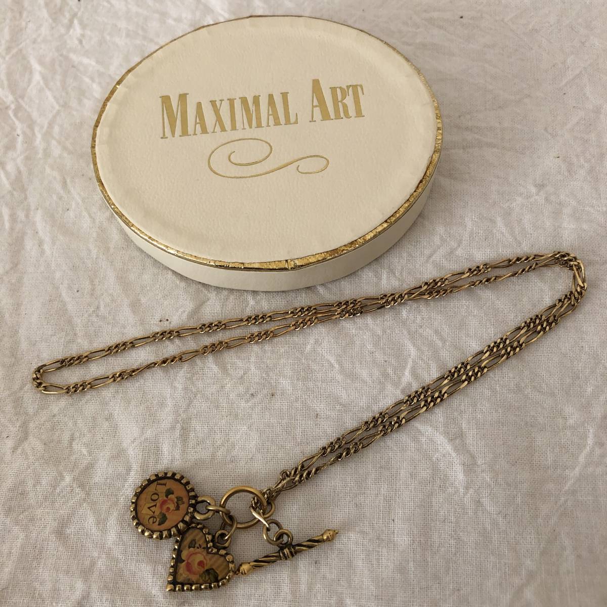MAXIMAL ART ネックレスです チェーン長さ:約40cm (素人採寸ですので多少の誤差はご了承ください。) 14kt金メッキです。 美品ですがUSEDですのでご理解いただける方のみ入札してください。 気になる方は入札をお控えください。 | ||
