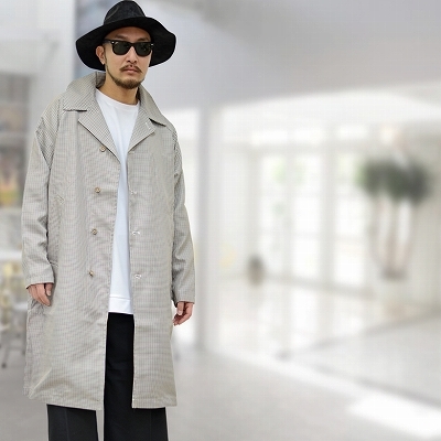軽やかな質感のチェック柄ゆったり系ステンカラーコート ショップコート。