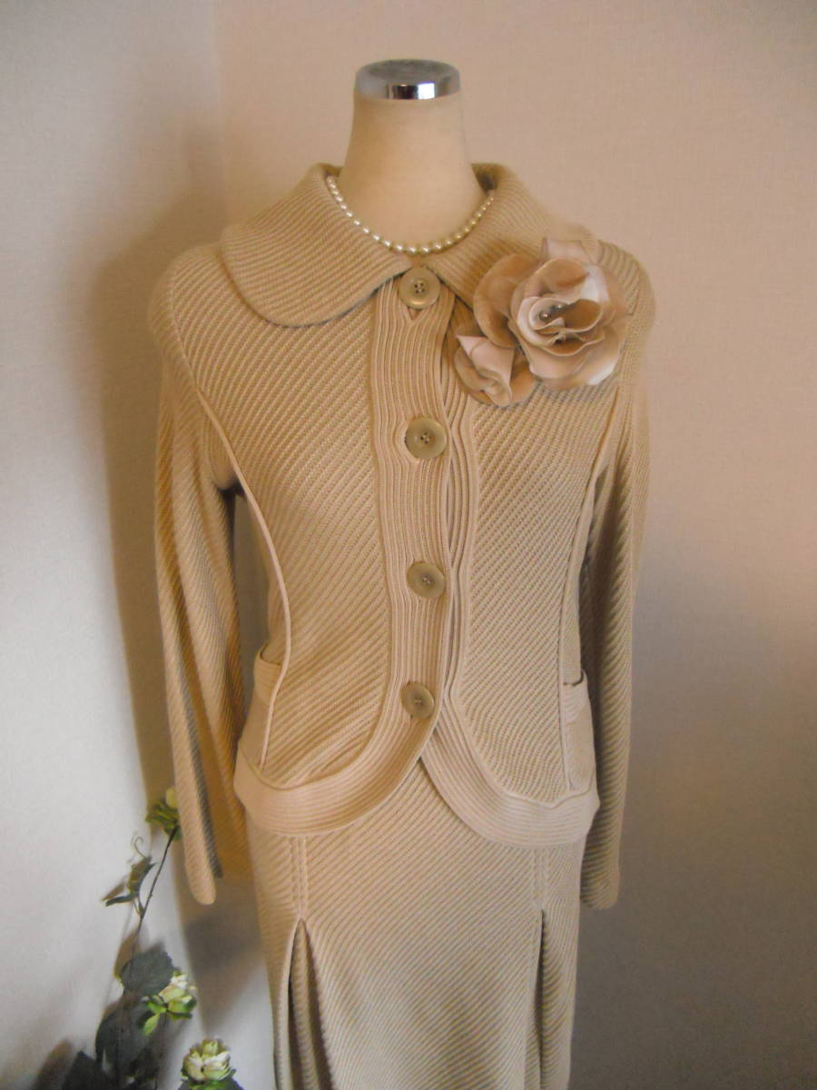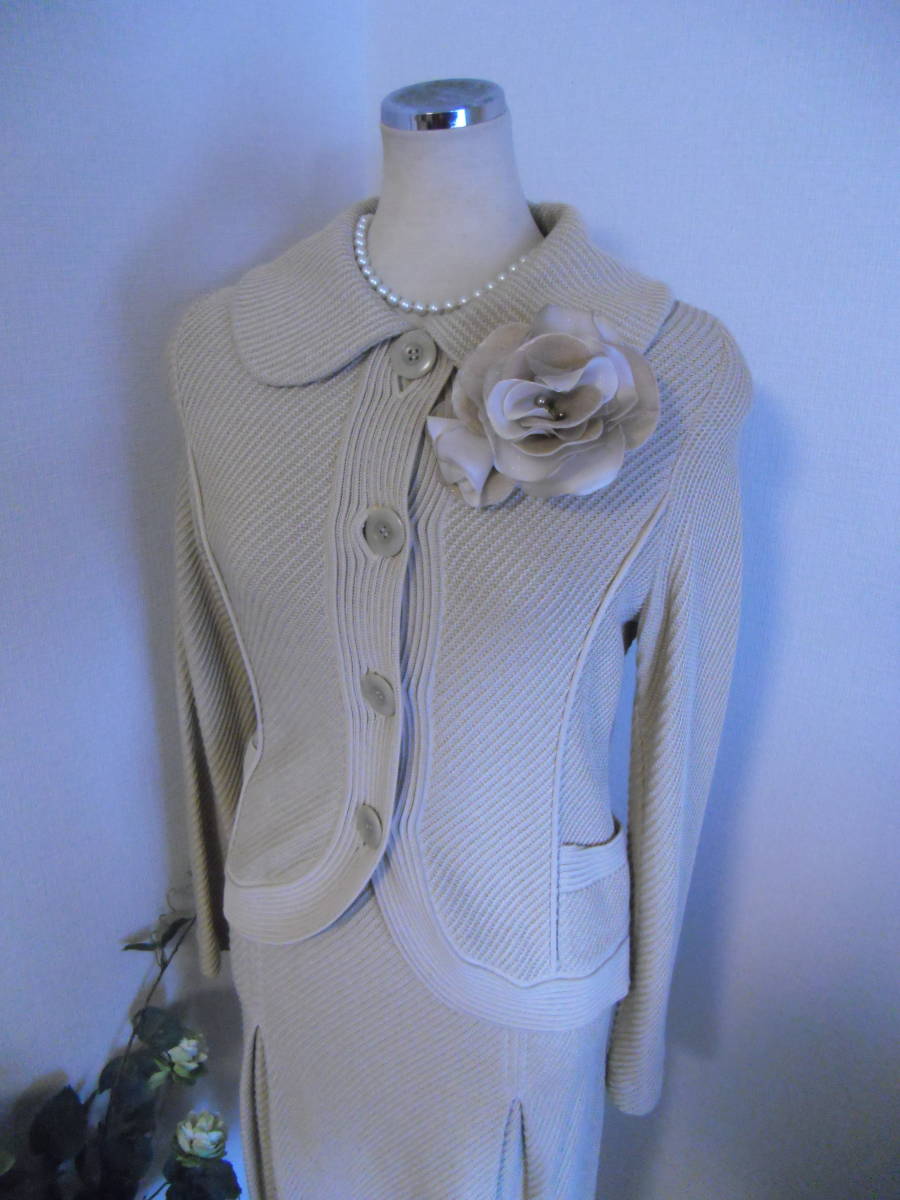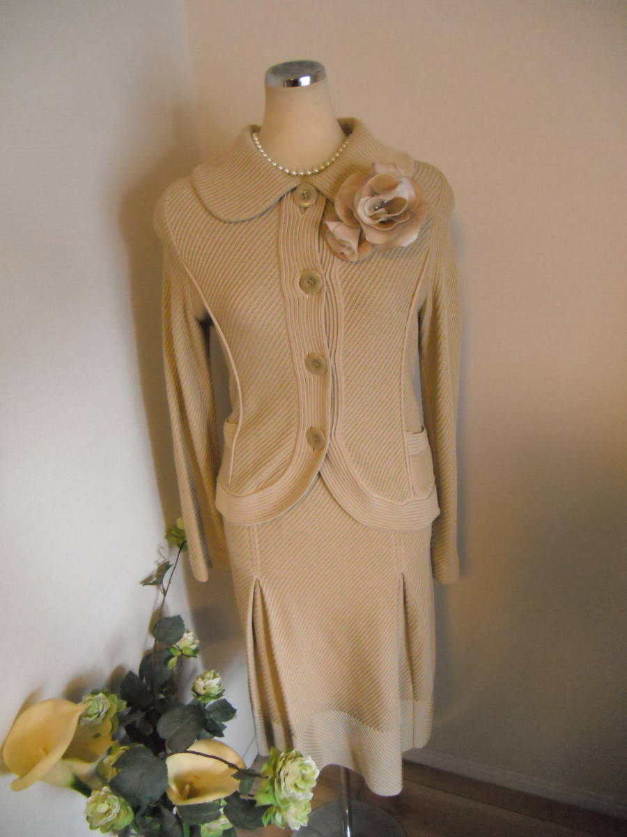 ユキトリイの着回し抜群のベージュのスーツでございます。しっかりとした質感のあるお生地でございます。学校行事やちょっとしたお出かけにぞんぶんにご着用頂けるスーツかと存じます。上下別々に他のお洋服とコーディネートしてお召しになれますので重宝かと存じます。素材は綿40、ポリエステル35、レーヨン25%でございます。若干の伸縮性がございます。上質で重宝なスーツをお探しのマダムにお勧めのお品でございます。定価は11万5500円(税込)。おサイズは9号。おサイズの詳細はジャケット肩幅37、身幅45、袖丈67、着丈64、スカートウエスト66、ヒップ90、丈67センチでございます。(素人採寸ですので若干の誤差はお許し下さい)保管、点検には万全を尽くしておりますが自宅保管でございますので細かい見落とし等があるかもしれません。細かいことがお気になるご繊細で神経質な方のご入札は固くお断り申し上げます。ご質問は入札前にお願い申し上げます。落札後はノークレーム、ノーリターンでお願い申し上げます。評価の悪い方、新規の方はご入札はお取り消しさせていただくこともございます。★新規の方はご入札の前に質問欄よりお知らせください★ご落札後は48時間以内にご連絡をお願い申し上げます。胸元のコサージュは参考商品でございます。