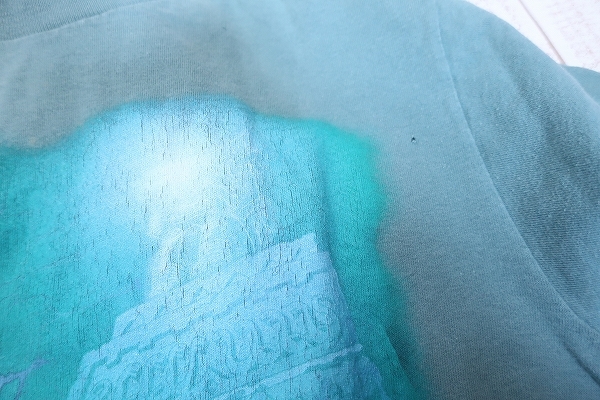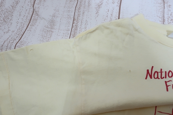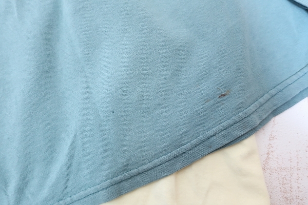 リブに毛玉、色褪せ、左側に1箇所の穴、ほつれ、左肩に穴、