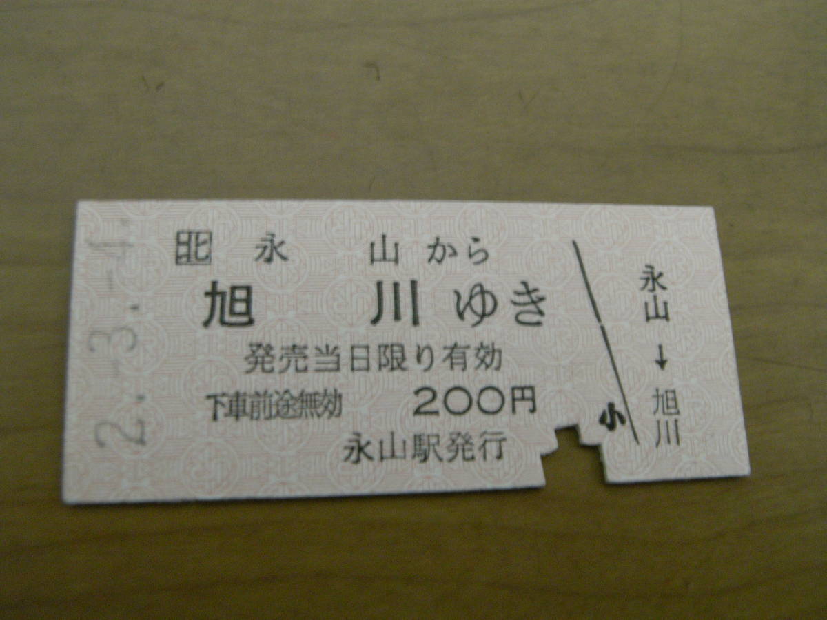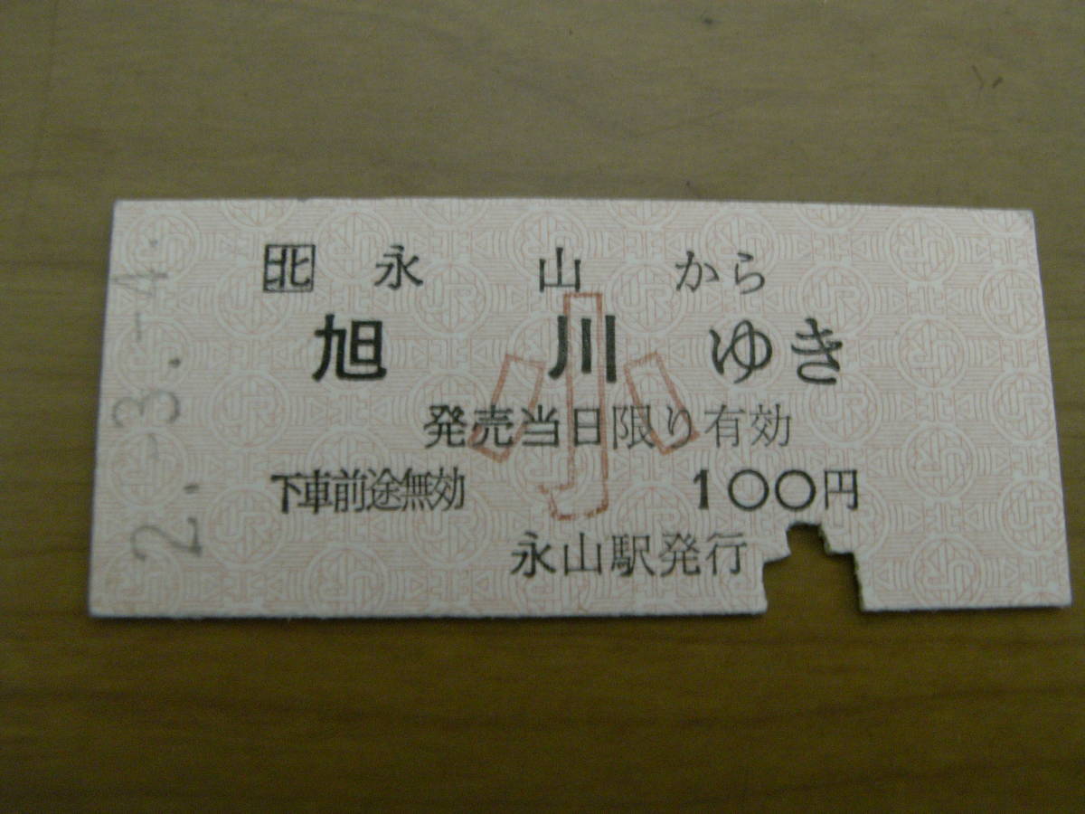 2枚/宗谷本線 永山から旭川ゆき 平成2年3月4日 永山駅発行 大小2枚 ●234並日付