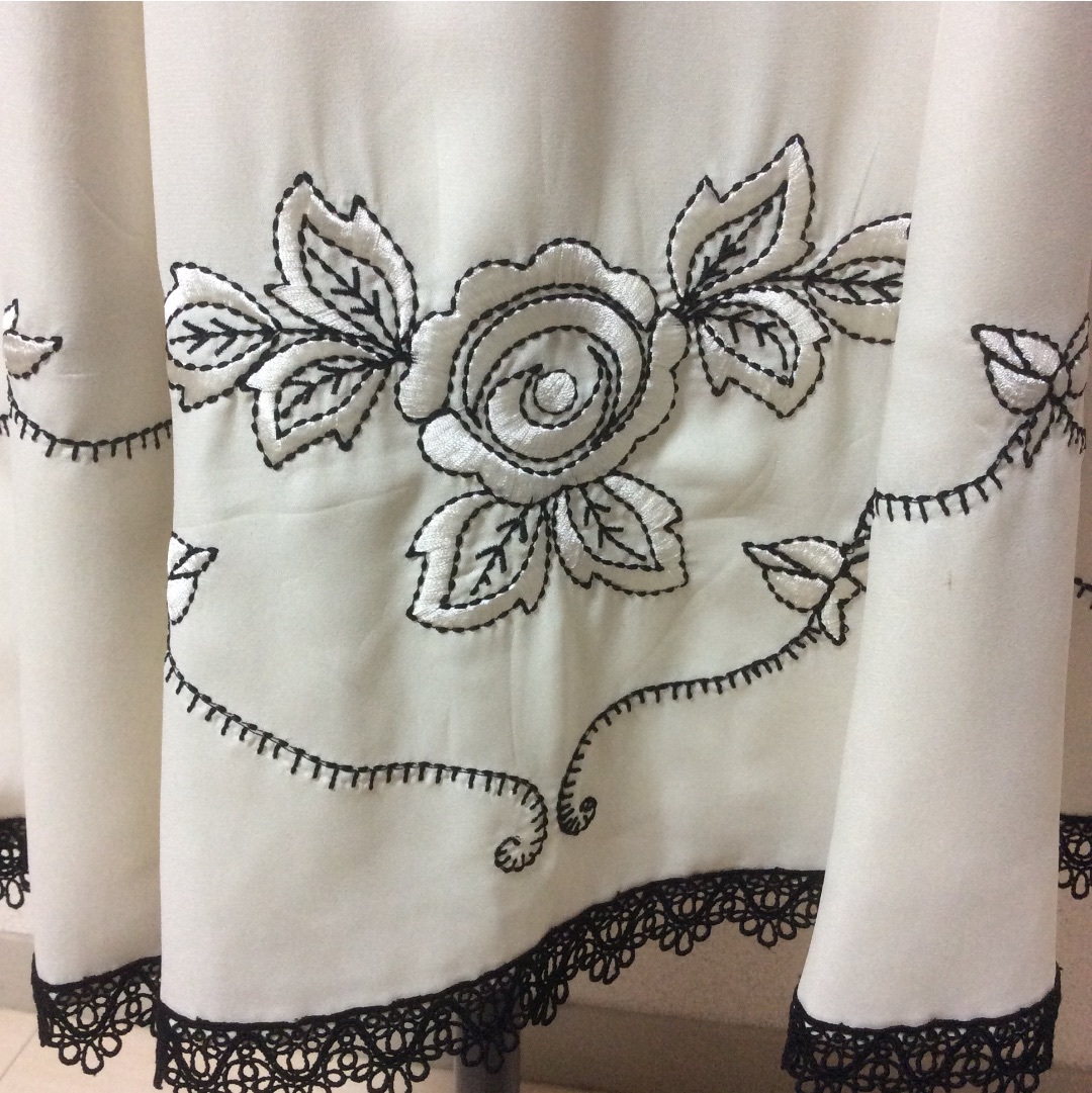 ジョーゼット生地に お花の刺繍が豪華なワンピースです。