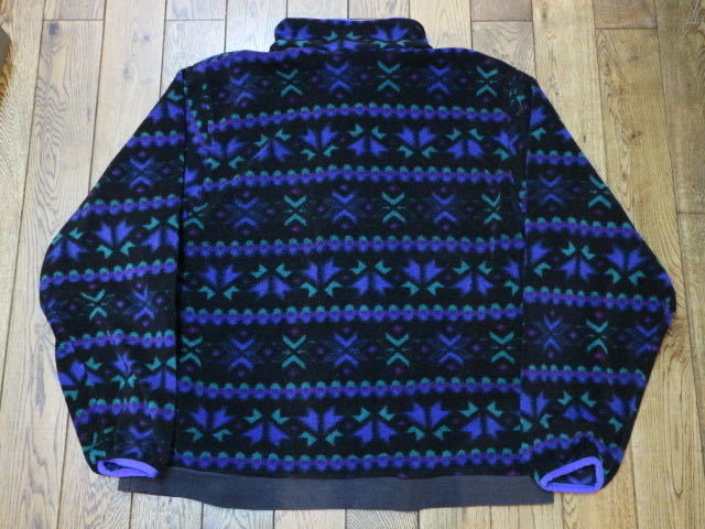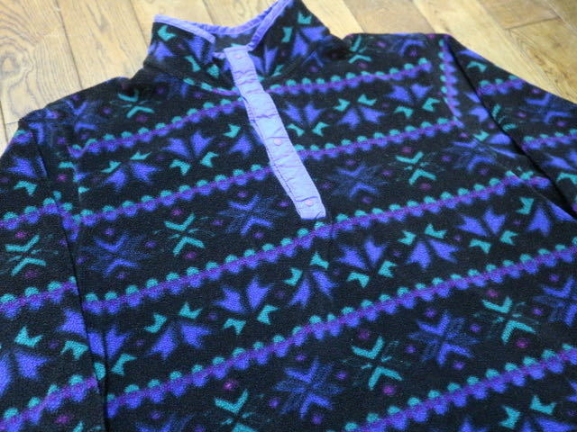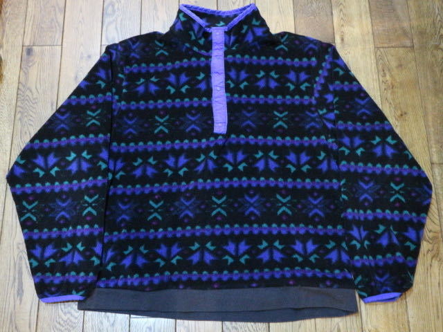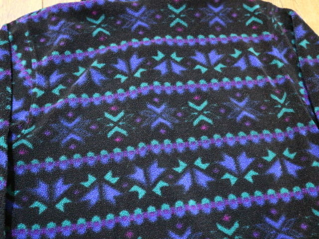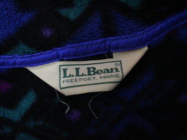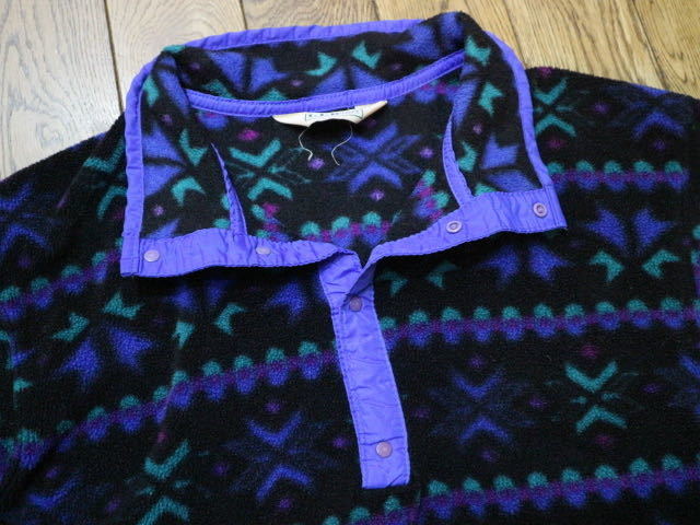 90s L.L.Bean 総柄 フリース ジャケット L ブラック スナップT プルオーバー パーカー エルエルビーン