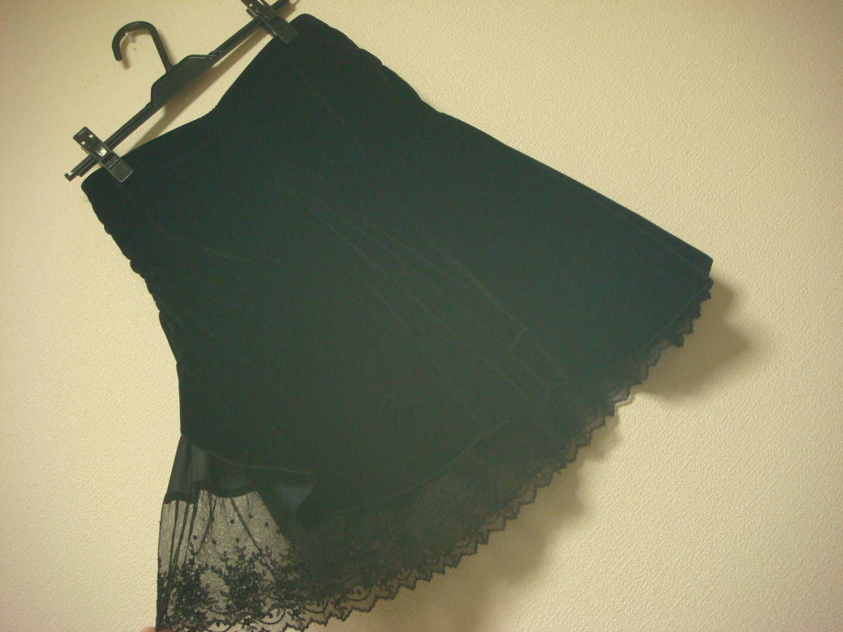 素敵! プチプードル ベルベット ベロア シャーリング レース スカート 黒 美品 フォーマル