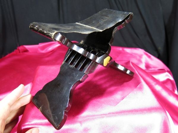 黒塗り折り畳み式旅枕   江戸時代 漆工 珍品 です。     コレクション整理での 出品です。